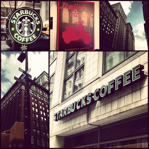Although not the most impressive of Starbucks, this one is not without its charms. The two red armchairs and poster sized image of an Italian scooter are two notable characteristics.