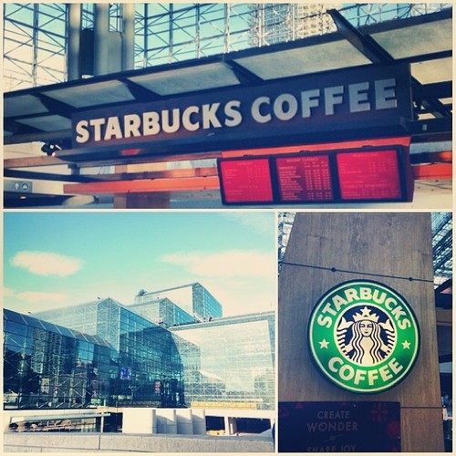 So I continued to wonder until a security guard asked me for my conference badge. I played dumb and asked her where the Starbucks was, but she didn’t know. Finally I found two gentleman with authentic Starbucks drinks in their hands and they informed me the Starbucks was on the other side of the building. So I cut around the registration line, bypassed more security guards, breezed by several construction teams — the convention center is apparently under renovations — until I finally spotted the Starbucks branded coffee stand in a mostly deserted area of the building. There was no line — even though stanchions were set up — and the baristas were eager to take my order. I then found a small cafeteria/seating area one floor down from the Starbucks and sat for a moment to enjoy my iced coffee before vacating the Javits Center entirely.