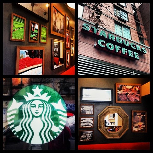 This Starbucks is literally inside of the Sony electronics store, blended perfectly in with the speakers and televisions. Most Starbucks within other buildings (e.g. Target and The NHL Store) are clearly separated by either half walls, glass panels or simply different tiles. But here the barista station is directly across from electronics displays and entertainment centers. Signing for the latest Sony speaker is placed directly above Starbucks’ newest blend. One wouldn’t think that coffee and electronics go so well together, but something about this co-branding just works.