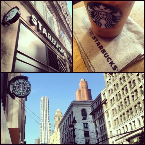Well, I have to admit. I came to Macy’s today with a plan: Visit the four Starbucks inside starting from the top and work my way out of the massive store in time to meet some friends for brunch. I started with a latte at the 6th floor Starbucks, quickly followed it with a double shot of espresso at the 5th floor Starbucks, took my time sipping a tall pike in the 3rd floor Starbucks’ generous seating area, and then arrived at the first floor balcony Starbucks with just enough room in me for another double shot.